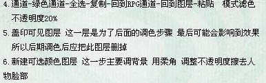 4、新建一个图层,按Ctrl + Alt + Shift + E 盖印图层。点通道面板,选择绿色通道按Ctrl + A 全选,按Ctrl + C 复制。回到图层面板,新建一个图层按Ctrl + V 粘贴,然后把图层混合模式改为“滤色”,图层不透明度改为:20%。