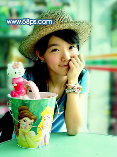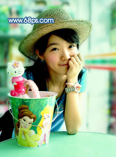 6、新建一个图层,盖印图层。简单的给人物磨下皮,效果如下图。