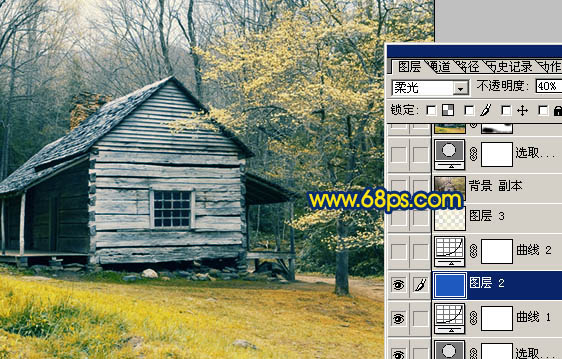 4、新建一个图层,填充颜色:#1E59BD,图层混合模式改为“柔光”,图层不透明度改为:40%,效果如下图。
