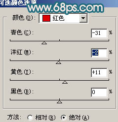 6、创建可选颜色调整图层,对红色进行调整,参数设置如图
