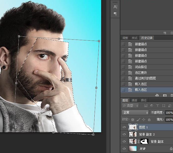 6、Ctrl+t变形面具旋转一个角度。