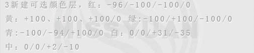 红:-96 / -100 / -100 / 0 ;黄:+100 / +100 / +100 / 0 ;