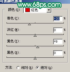 4、创建可选颜色调整图层,对红色进行调整,参数设置如图