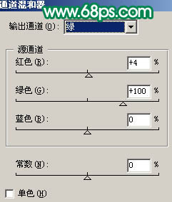 5、创建通道混合器调整图层,对绿色进行调整,参数设置如图