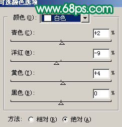 6、创建可选颜色调整图层,对白色进行调整,参数设置如图
