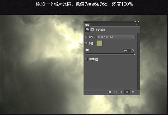3、添加一个照片滤镜调整图层,色值为#a6a76d,浓度100%。