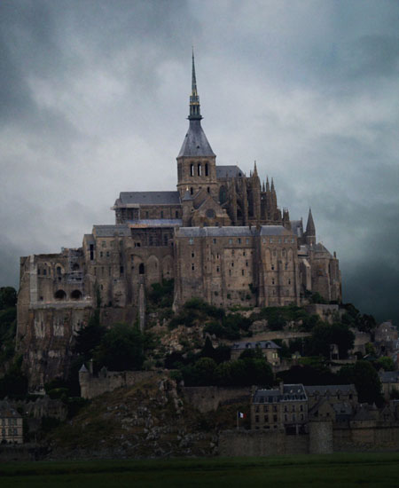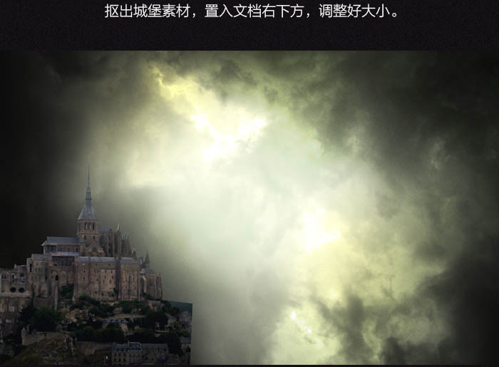 6、抠出城堡素材,置入文档右下方,调整好大小。