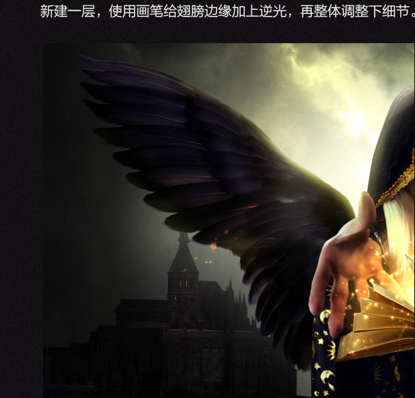 22、新建一层,使用画笔给翅膀边缘加上逆光,再整体调整下细节。