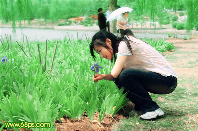 原图素材绿色部分较多,不过有点偏黄。调色的时候只需把绿色部分调整一下,再加上一些橙色的辅助色即可。也可以按照自己的喜好调整。