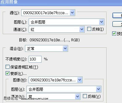 + Alt + Shift + E),执行:图像 > 应用图像,参数设置如下图。