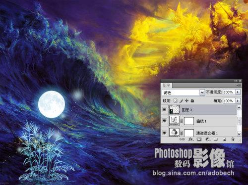 5、打开素材,并移至过来,放在画面的左侧,图层模式:滤色。将黑色屏蔽掉。