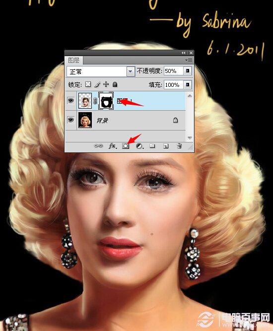 6、添加蒙版使用黑色画笔工具,把硬度降低为0,慢慢擦掉脸部不需要的部分,如下图所示。