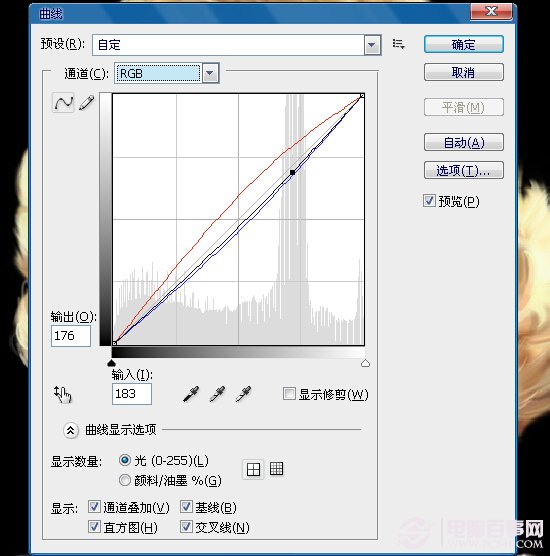 8、我们再次使用曲线对红、蓝、RGB通道进行调整,此时面部颜色比较接近了,如下图所示。