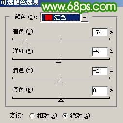 7、执行:图像 > 调整 > 可选颜色,对红色进行调整,参数设置如图
