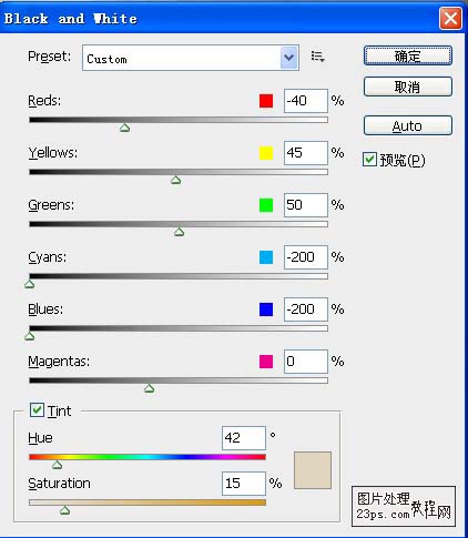 6、先后建立调整层“BLACK & WHITE”和“曲线”(图层 > 新建调整图层),设置如下: