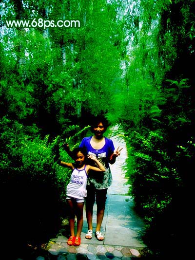 素材图片的背景部分树木比较浓密,比较适合制作梦幻效果。处理的时候先把复制的图片模糊处理,然后改变下图层混合模式,用蒙版控制好范围,效果就出来了,后面适当调整下颜色即可。