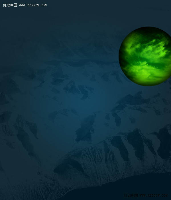 9、现在创建一个新层叫做“圆亮点”。在你的绿色圆圈里拖出白色到透明的径向渐变。然后改变这一层的混合模式为“叠加”,降低不透明度到40%。这样就在你的云圈里添加了一个漂亮的灯光效果。