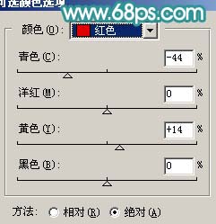 9、创建可选颜色调整图层,对红色进行调整,参数设置如图