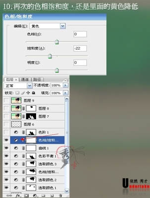 10、创建色相/饱和度调整图层,参数设置如下图。