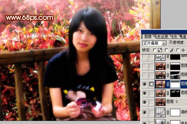 5、新建一个图层,盖印图层,图层混合模式改为“正片叠底”,加上图层蒙版用黑白渐变拉一点透明效果如图