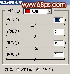 9、执行:图像 > 调整 > 可选颜色,对红色进行调整,参数设置如图