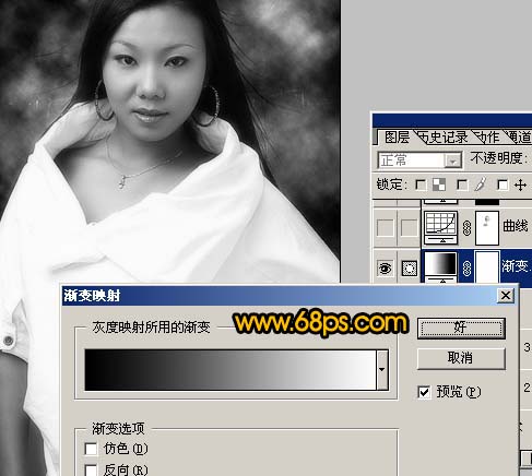 6、创建渐变映射调整图层,选择黑白渐变,如图