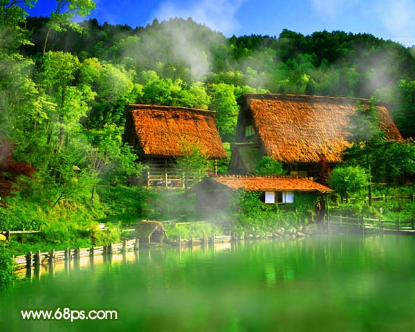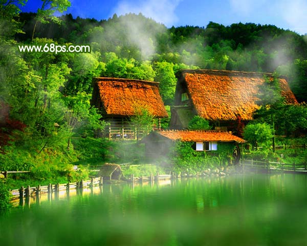 作者合成的非常细腻,很多细节的处理都值得借鉴,如水面倒影的处理部分,作者先制作好水波纹理,然后把倒影部分用置换和动感模糊滤镜特殊处理,