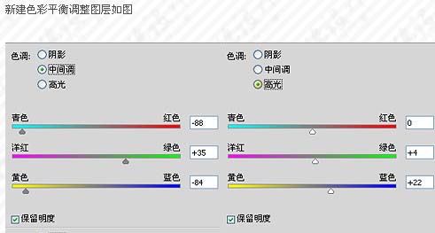 7、创建色彩平衡调整图层,对阴影,中间调,高光进行调整,参数及效果如下图。