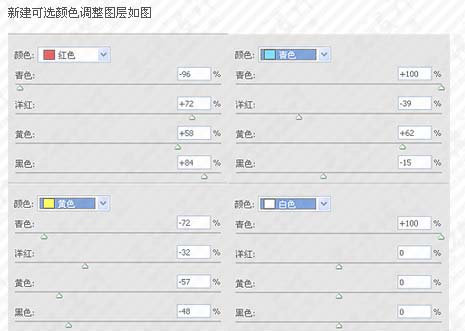 8、创建可选颜色调整图层,参数设置如下图。