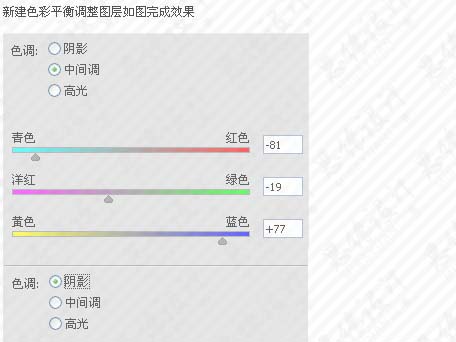 9、创建色彩平衡调整图层,参数设置如下图,确定后完成最终效果。