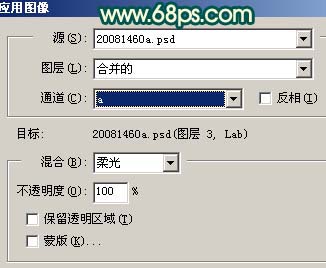 9、新建一个图层,盖印图层,执行:图像 > 应用图像,参数设置如图