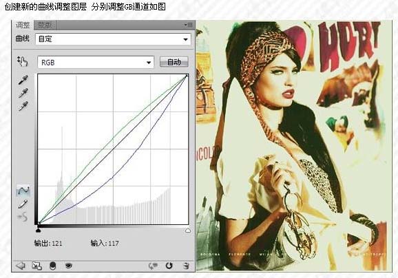 3、创建曲线调整图层,对绿色和蓝色进行调整,参数及效果如下图。