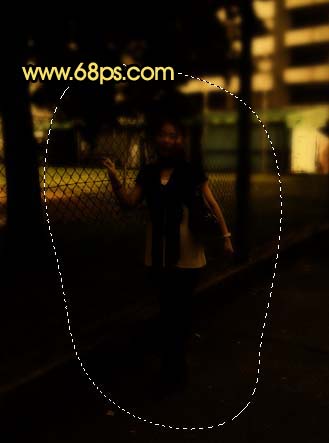 8、新建一个图层,盖印图层,选择套索工具勾出如图所示选区,按Ctrl + Alt + D 羽化50个像素,按Ctrl + J 复制到新的图层,然后把图层混合模式改为“滤色”