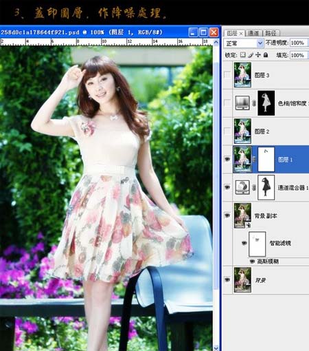 3、新建一个图层,按Ctrl + Alt + Shift + E 盖印图层,适当做降噪处理。