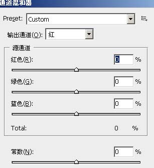 1、打开原图素材,创建通道混合器调整图层,参数设置如图