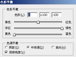 3、再创建色彩平衡调整图层,参数设置如图