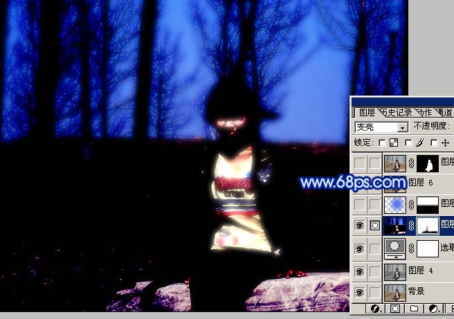 4、新建一个图层,盖印图层,执行:滤镜 > 模糊 > 高斯模糊,数值为5,确定后按Ctrl + M 调亮一点,再把图层混合模式改为“变亮”,加上图层蒙版稍微把底部石头部分擦出来,如图