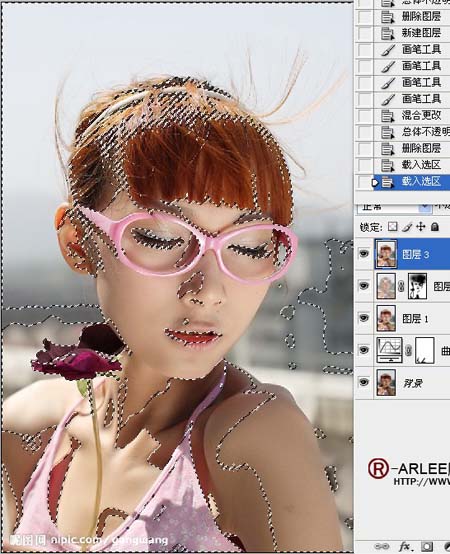 4、添加图层蒙版,将五官,头发衣服细节搽出来,目的-NEAT进行磨皮细节处理。