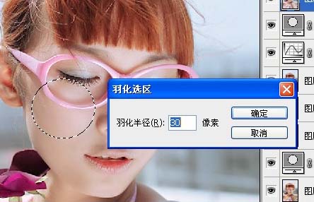 13、新建个空白图层为美女加点腮红,先拉个选区,羽化一下,具体看图。