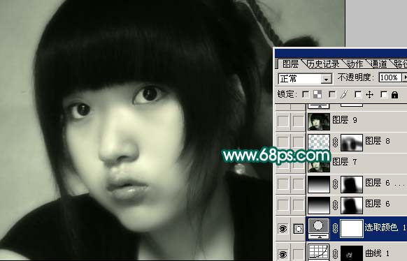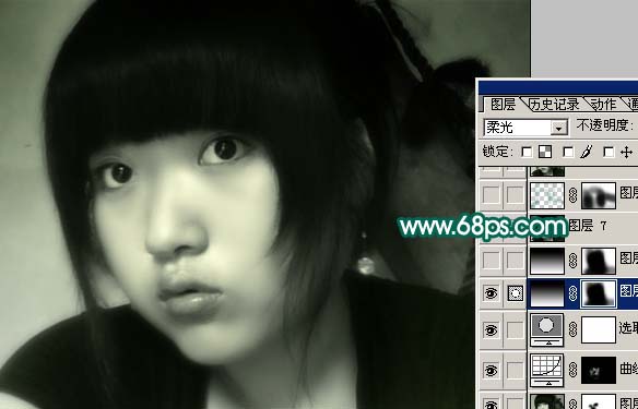 9、把渐变图层混合模式改为“柔光”,加上图层蒙版用黑色画笔把人物部分擦出来,如图