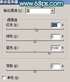 10、创建通道混合器调整图层,对蓝色进行调整,参数设置如图