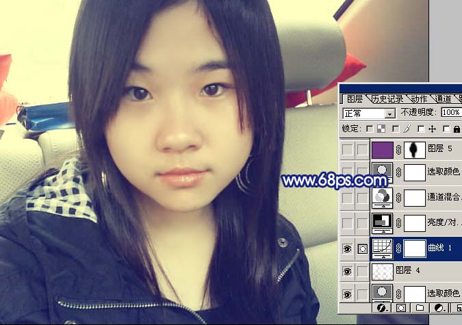 4、创建曲线调整图层,参数设置如图6,7,效果如图8。