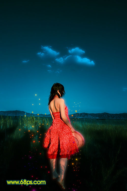 作者合成的非常细腻,很多细节的处理都值得借鉴,如水面倒影的处理部分,作者先制作好水波纹理,然后把倒影部分用置换和动感模糊滤镜特殊处理,