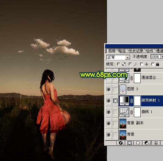 本教程调色比较简单,主要是调整背景部分的颜色,色彩不需要太鲜明,这样可以突出人物的色彩。调色的时候需要把人物及背景分开来调。