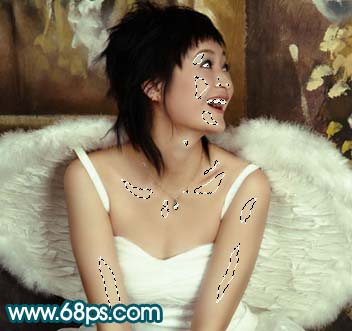 4、新建一个图层,盖印图层,点通道面板,把蓝色通道复制一层,按Ctrl + M稍微调暗一点,把前景颜色设置为黑色,选择画笔把除人物脸部及皮肤以外部分涂黑,选择减淡工具把人物脸部高光部分稍微涂亮一点,如图