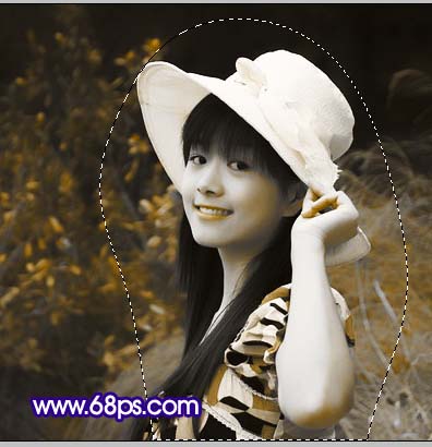 4、用套索工具勾出图6所示的选区,按Ctrl + Alt + D羽化25个像素,然后创建曲线调整图层
