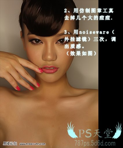 3、用Noiseware滤镜降噪处理,加强脸部的质感。如果没有这款滤镜可以去网上下载。