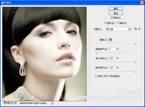 4、执行:滤镜 > 杂色 > 减少杂色,参数设置如下图。