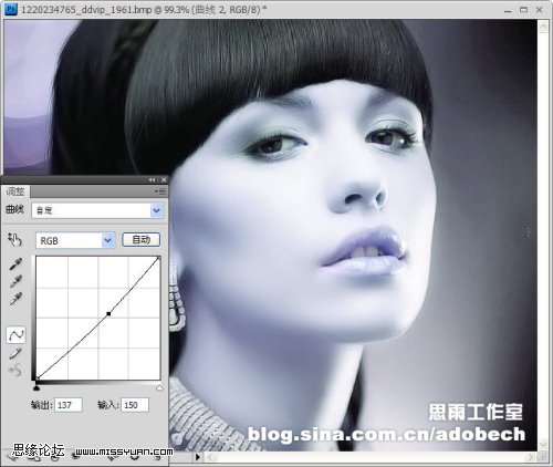 8、创建曲线调节图层,调RGB压暗图像,适当的调节R、G、B通道,目的是把图片调成偏蓝色,当然可以根据自己需求调节。