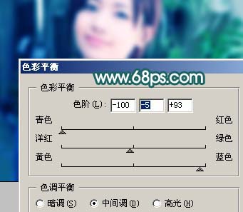 8、新建一个图层,盖印图层,执行:滤镜 > 模糊 > 高斯模糊,数值为5,确定后按Ctrl + B调整色彩平衡,参数设置如图